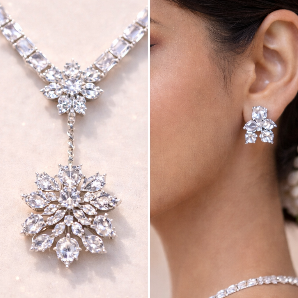 Product Name: Floral CZ Diamond Look Necklace Set