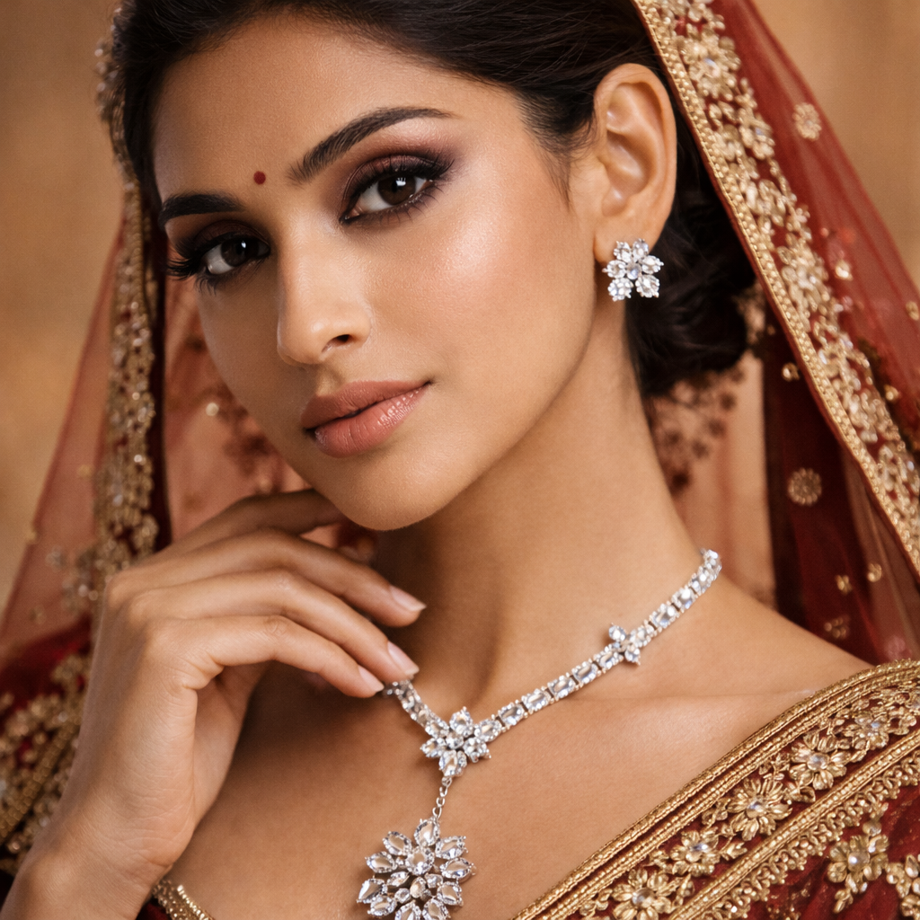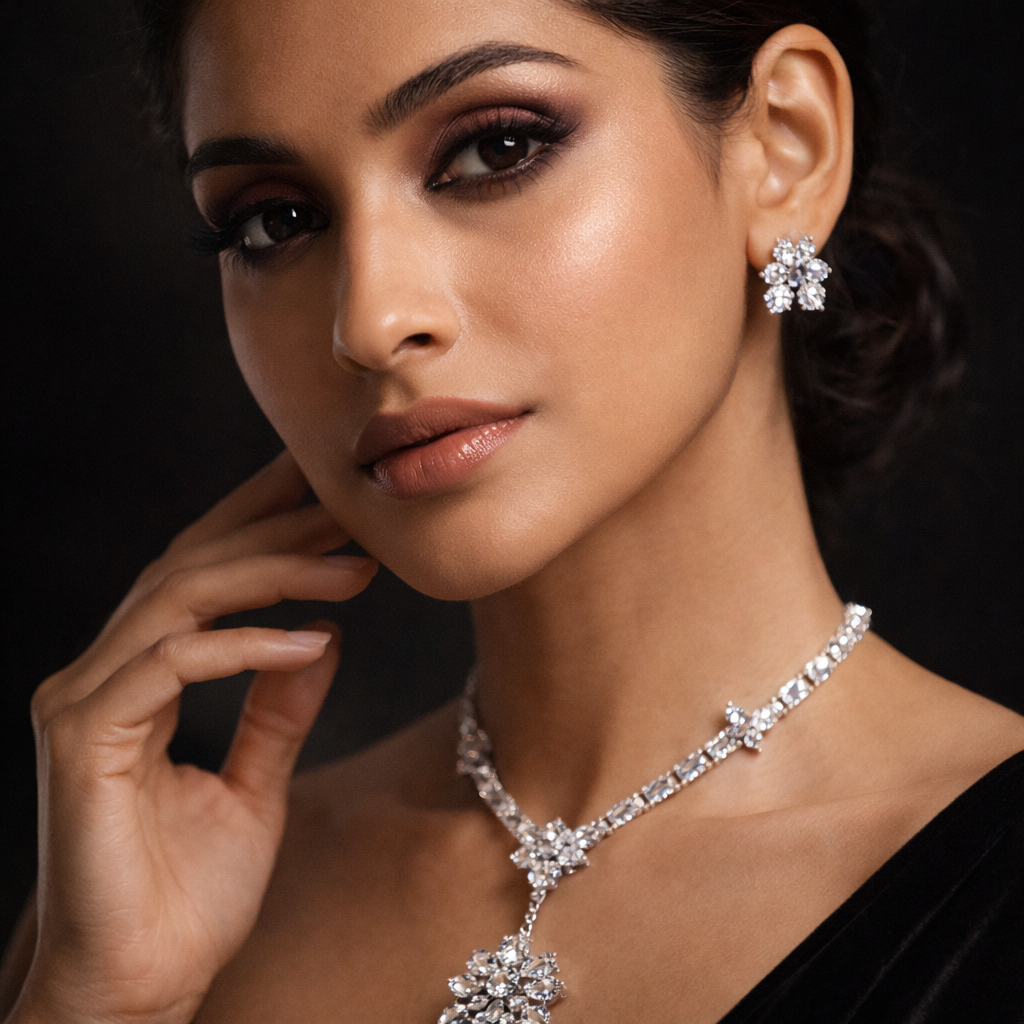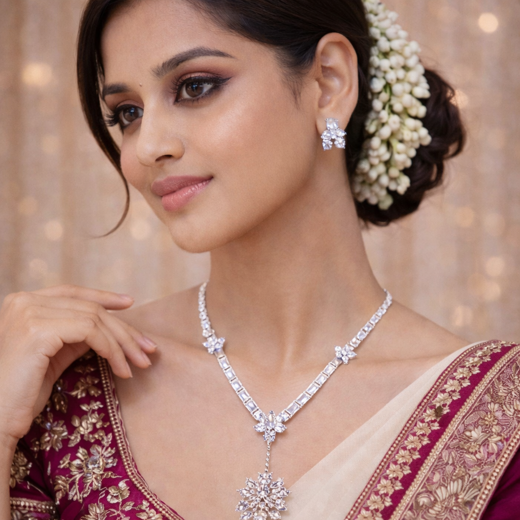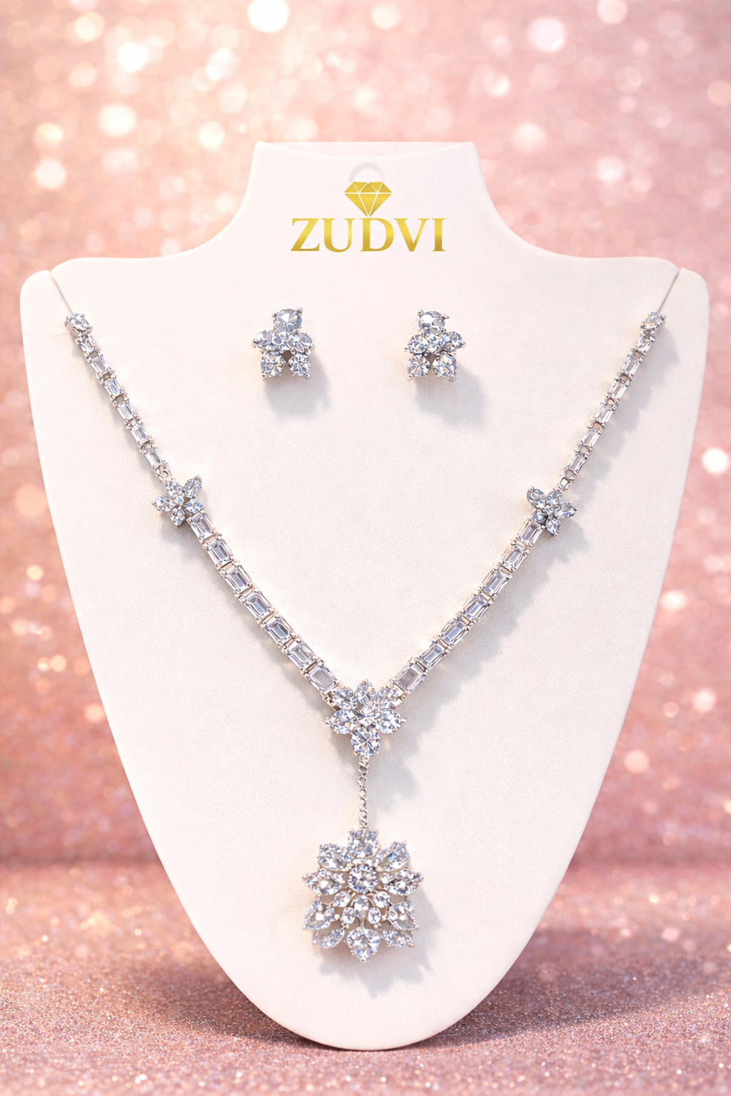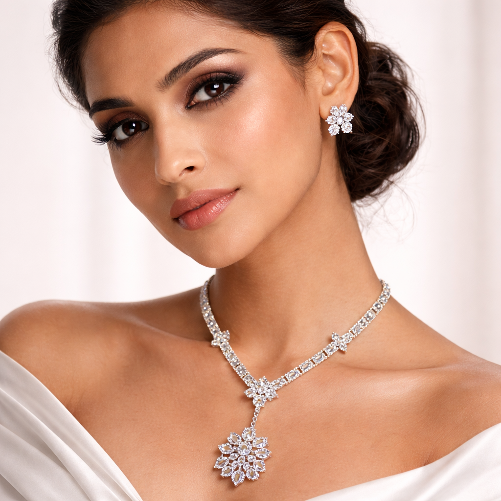 The ZUDVI Floral CZ Diamond Look Necklace Set is designed to add timeless elegance to your jewelry collection. Crafted with high-quality cubic zirconia stones, this set offers a brilliant diamond-like sparkle with a refined floral pattern.